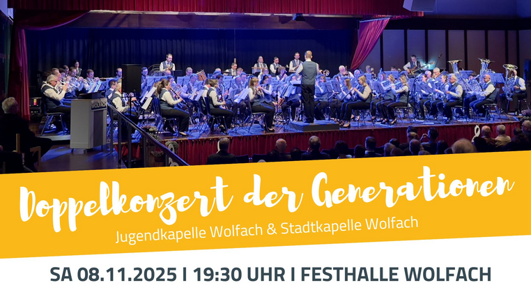 mit der Jugendkapelle Wolfach & der Stadtkapelle Wolfach am Samstag, 08.11.2025 um 19:30 Uhr in der Festhalle Wolfach.